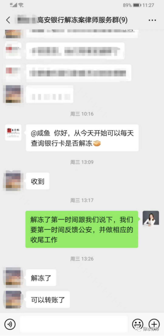 最终,在委托不到20天且不需要李某前往公安机关的情况下,李某银行卡顺利解冻。